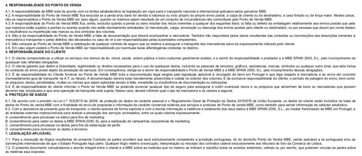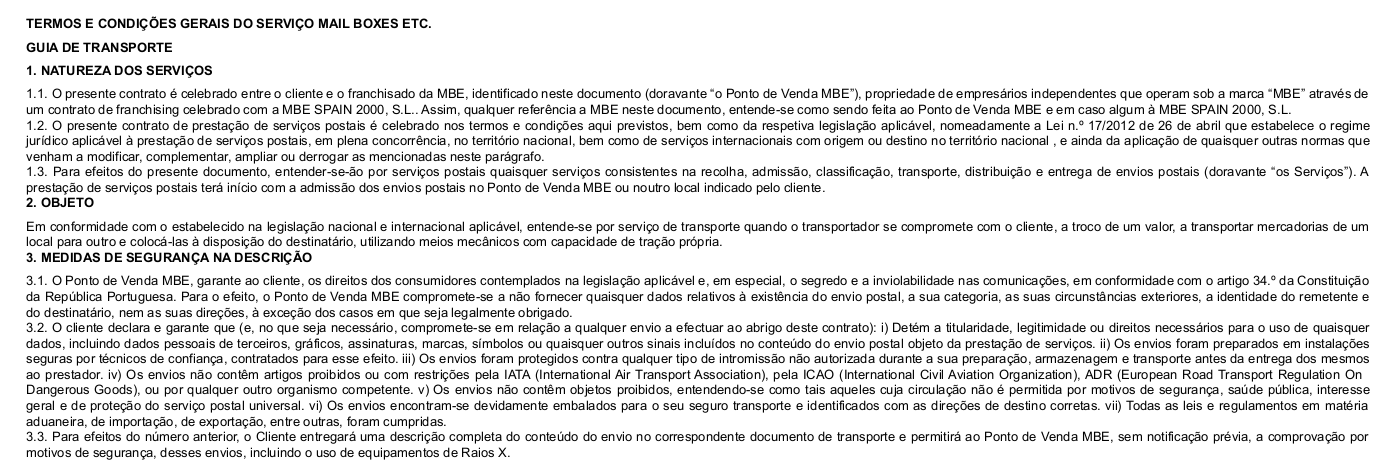 serviço detalhadas no presente documento e que